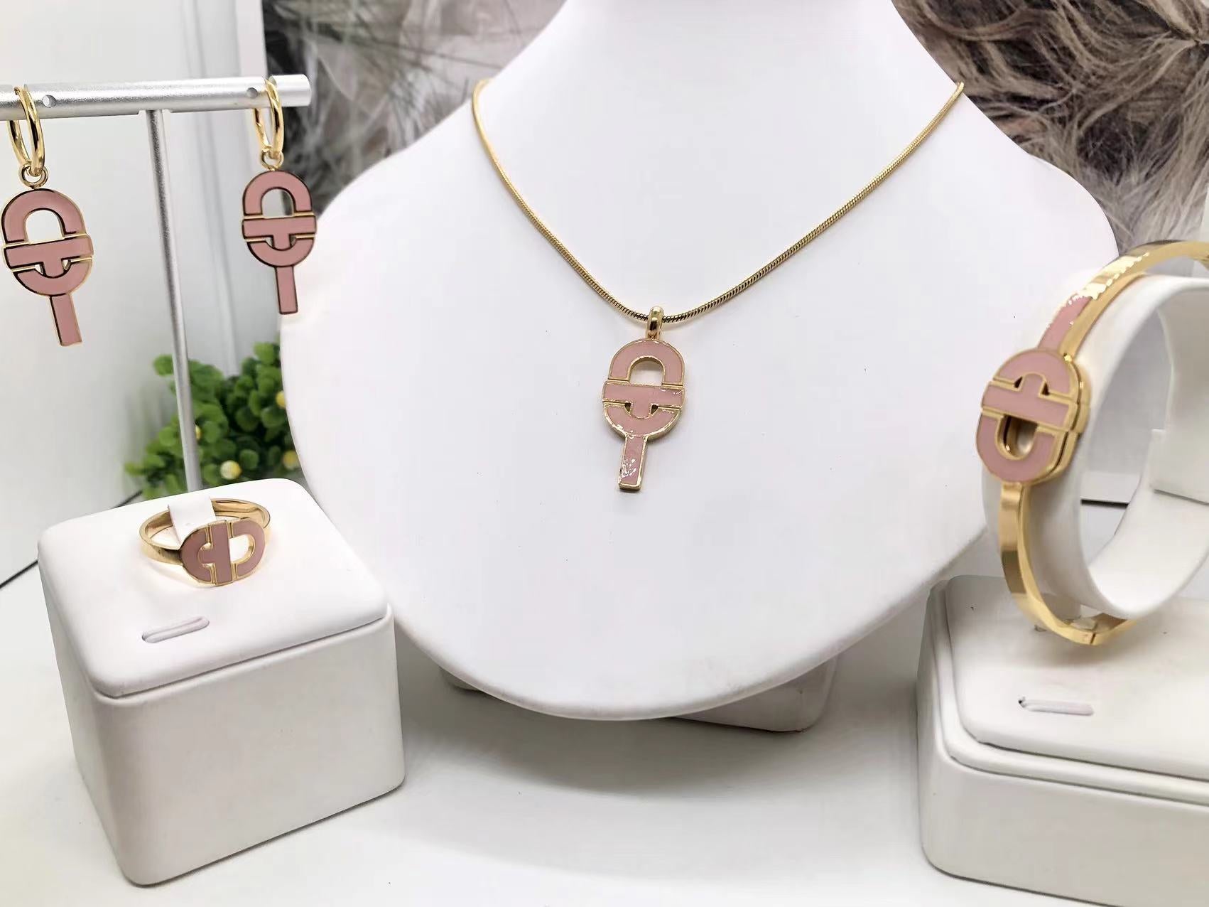Gorgeous women's stainless steel necklace, earrings, bracelet, and ring set