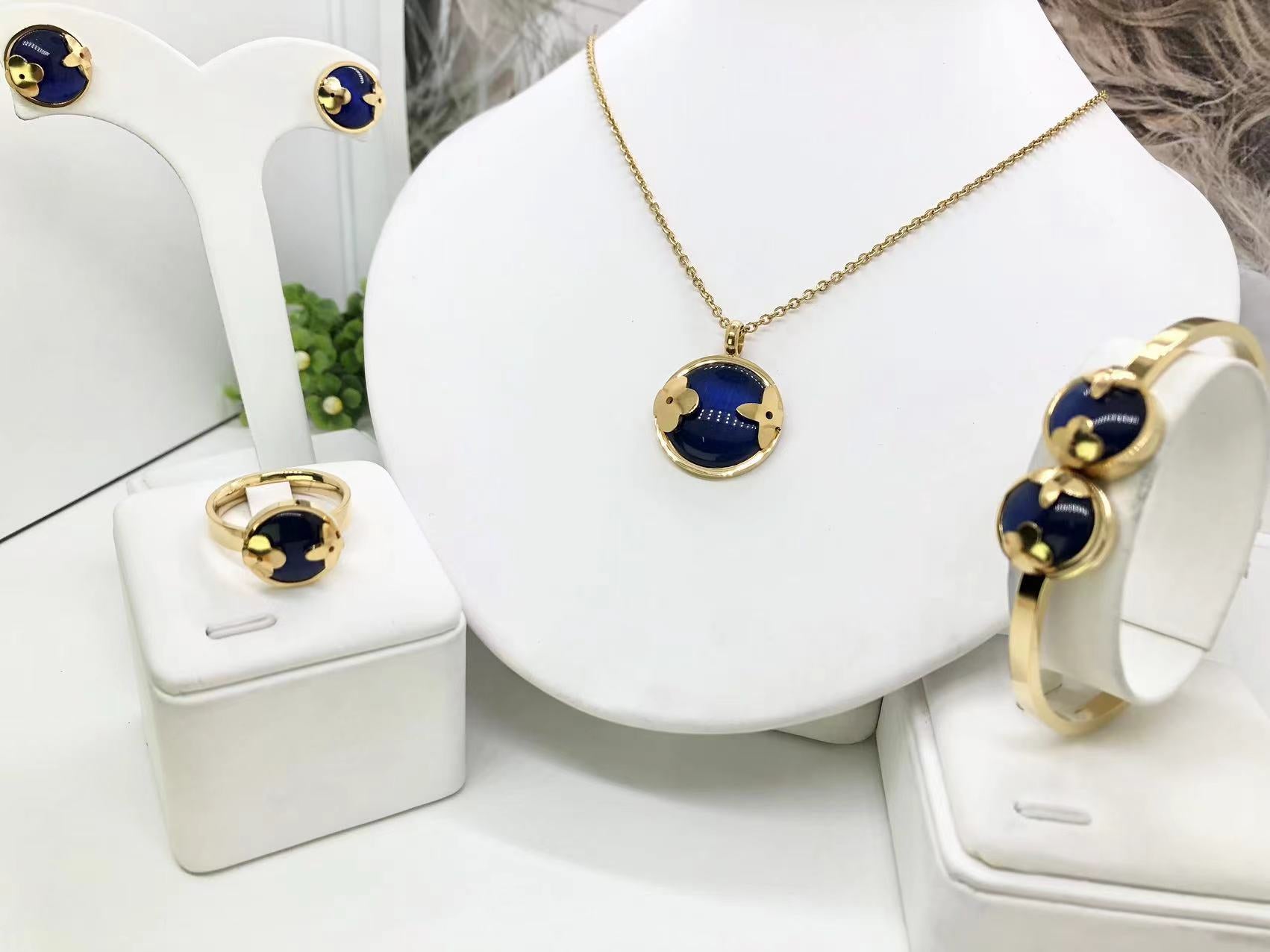Gorgeous women's stainless steel necklace, earrings, bracelet, and ring set