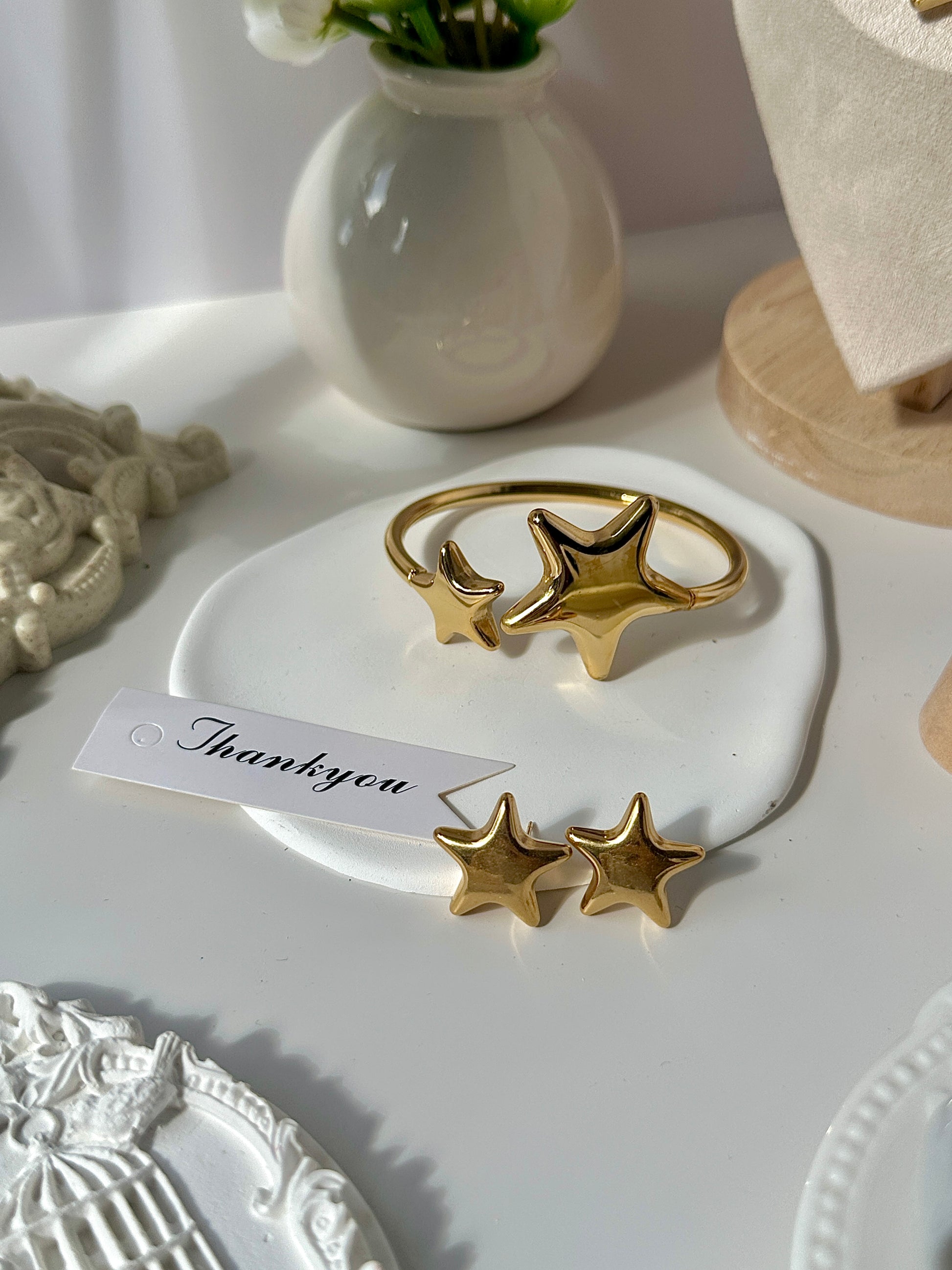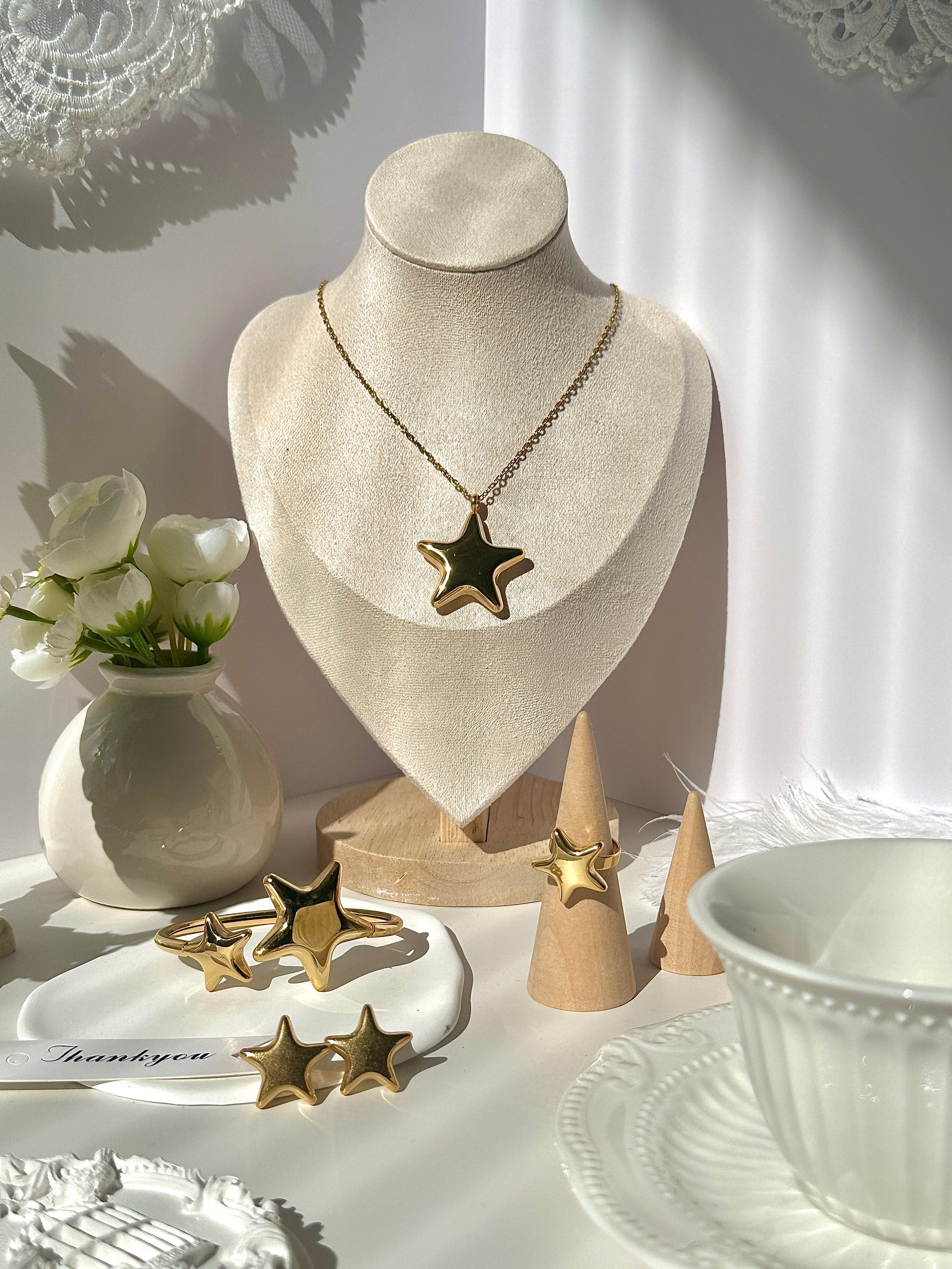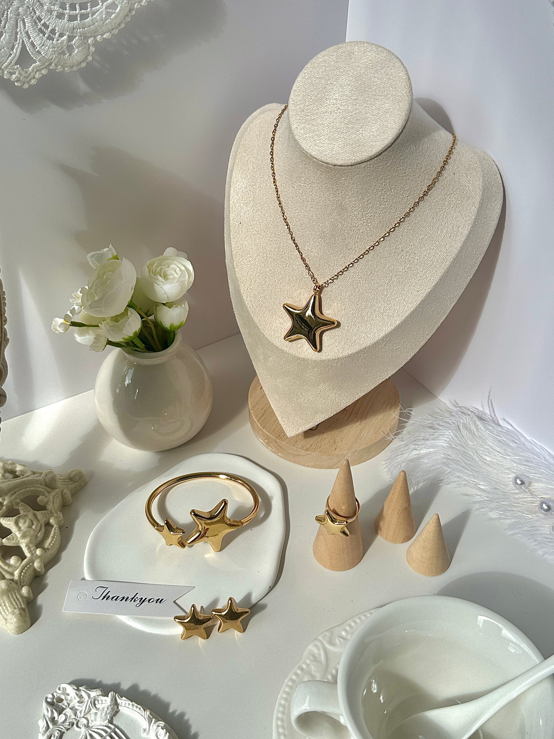 Gorgeous women's stainless steel necklace, earrings, bracelet, and ring set